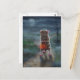 Ett Halloween-vykort med min målning Halloween Fog. Lite brunt råtta är redo för Halloween med sin pumpa basket, dimma och måne.
