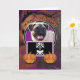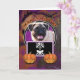 Halloween hälsningar kunde inte få mer spookier än med denna mopshundportion dig som överför ditt läskiga meddelande. Denna design är tillgänglig i nästan 100 hund aveln. Om du inte ser din hund aveln, låt mig vet, och jag ska gör mitt bäst för att tillfoga det för dig. Det är också möjligheten som sätter DITT EGNA HUSDJUR, in i denna design, och något av min annat planlägger. Kontakta precis enkelt mig för att finna ut hur. Denna design är också tillgänglig som ett fotokort för att ditt ska upload ditt favorit- foto in i. Perfekt för din egna lite elakt troll….,människa eller inte! Om det finns en produkt, som Zazzle erbjuder och, dig inte finner den här, låt mig vet, och jag ska är lycklig att skapa den för dig.