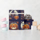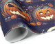 Denna klara och färgstarka illustration har en samling av Halloween-temade konstruktioner som är centrerade kring pumpor. Det finns pumpor med ansikte, pumpor med häxor och pumpor omgivna av fladdermus och stjärnor. Andra inslag är spöken, döskallar och snurrande mönster. Bildens allmänna stämning är festive, spooky, och något högre, perfekt för Halloween firande.