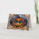 Halloween-pumpa i glasmålning med spöktema helgkort