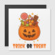 Dela festlig Halloween-stämning med detta unika magnetiska kort som visar en leende pumpakorg som svämmar över av färgglada godisar och sugrör. Perfekt som en inbjudan till fest, säsongsrelaterad hälsning eller rolig dekorativ souvenir till din kyl eller kontors tavla. Ett lekfullt och praktiskt sätt att fira den spökliga säsongen!