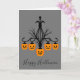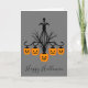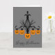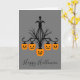 Gott mönster av en svart chandelier med skrumpna pumpor. Snyggtens gotiska hallopoldesign med ett svartvitt och orange tema. Happy halloween