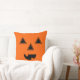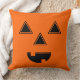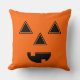 Detta festliga Halloween-dekorativ kudde visas i ett svart och orange ansikte tryckt på ett svart och . Anpassa den här kudden eller köp som det är.