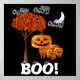 Cute Pumpkin-familjen som står vid Träd med Orange Höst löv Poster Dekorationer för Halloween eller Harvest Party. Perfekt för kyrkan Harvest Halloween fest. Vita måne och moln med en vän som leende Halloween-Pumpkin Head-familj med en vän BOO! Med fjol Ögon ovanpå varje stort Brev!