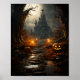 Halloween Pumpkin in Forest Spooky Pumpkin Poster