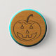 En rund knapp av trä med en ritad pumpformad jack-o'-lantern med en glödande blå kontur.