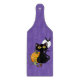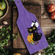 En söt, liten svart katt med en orange pumpa, fladdermus, akorns och fullt allt i bakgrunden av lila