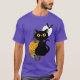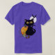 En söt, liten svart katt med en orange pumpa, fladdermus, akorns och fullt i bakgrunden av lila