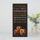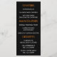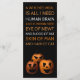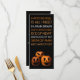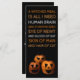 Halloween Pumpkin Menu-rackkort. Bakgrunden till färg och färg i texten kan inte bara ändras, utan du kan också ändra texten och lägga till din egen speciella stavning. På menyn står det: "EN WITCHES MEAL ÄR ALLT JAG BEHÖVER, HUMAN BRAIN OCH PUMPKIN SEED. ÖGA I NEWT OCH FLADDERMUS BLOD, HUD OCH HÖR AV KATT." Underbar för Restauranger, Halloween-händelser och födelsedagsfester.