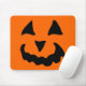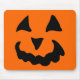 En orange och svart lycklig pumpa ansikte mousserande. En jack-o-lantern-muspekare i lycklig.