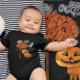 Lätt till-shirt Halloween eller Harvest Party Costume för baby. Underbar för er kyrka Party! Cute Pumpkin-familjen står vid Träd med Orange Höst löv på en svart t-shirt. Med några rymdföremål i Roligten, t.ex. ett vitt halvmånsfärande måne, roterande moln, färgstarka guld och blå stjärnor och mättnad! Allt med den där vänliga leende Halloween-huvudfamiljen!