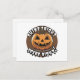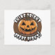 En illustration av jack-o'-tecknad-stil med en bred, togod flin. Pumpan är orange med brunstam och ställs in mot brunt bakgrund. Pumpangens ögon och näsa är utskurna och skapar ett skämt uttryck. Texten "Shine Bright Skrämmer Höger!" omger pumpan i ett vitt, ojämn typsnitt som ökar bildens festiva och något hotfulla stämning.