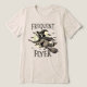 Halloween Raccoon-guiden Frequent Flyer Funny Modern Tri-Blend Shirt har texten "Frequent Flyer" i modern skripttypografi med en rackoonguide som flyger på en broomstick med fladdermus som flyger i bakgrunden. Perfekt för land Halloween fest och firande. Skapat av Evco Studio www.zazzle.com/store/evcostudio