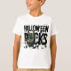 Boys tee shirt that says Halloween rocks with zombie hands making a cool symbol.