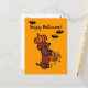 Halloween Röd Slät Hårig Dackel Vykort för Doxie Fans! Unik och rolig Hundkonst målad av Naomi Ochiai från Japan. En bedårande Röd Slät Hårig Dackel med Pumpa Hatt säger Bus eller Godis!
