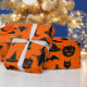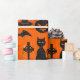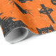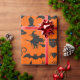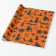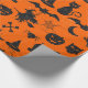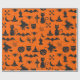 Halloween roligt tema som slår in papper - spöken, pumpor, häxor, fladdermöss & ben - i fauxsvartglitter på orange bakgrund