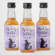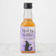 Anpassade häxetiketter för din Halloween-inspirerade sängkammarparty. De har siluetten av en häxa på en rökig bakgrund.