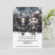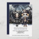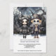 Halloween Scary Couple, gothic Girl and skeleton boy in hemsökt mörk skogen. Ricaso-inbjudningar från personlig