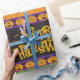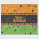 spindelnätets bakgrund för orange och grönt. Centrumbilden har ett klassiskt Halloween-motiv. Diskret och detaljerat utformat inslag inklusive läskigt ögon, fladdermus och gräns på Halloween-pumpor. Du kommer att kärlek! Alla bilder och teckningar ©JESTERFUL Store.
