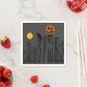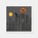 Jack o’ lantern på ett staket med kråka på en Halloween-scen på pappra tallrikar. Roligt för ett skrämmande party eller firande.