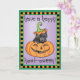 Skicka Halloween hälsning med det här kortet av en söt Schipperke-valp i ett leende Jack-o-Lantern. Underbar för barn av alla åldrar som kärlek Schipperkes och Halloween. Ha en Lycklig HOWL-Oween!