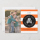 En festlig dödskalle med "trick or treat happy halloween" runt omkring på en orange-vitrandig bakgrund. Ert foto till vänster. Lägg till egen text eller bilder på baksidan för en Halloween-inbjudan eller ett tackkort för oktober. Foto av Photography © Storytree Studios, Stanford, CA. Vänligen kontakta mig med frågor eller specialförfrågningar. Tack för besöket!