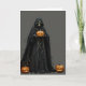 Halloween skelett iförd svart huva mantel klippnin helgkort