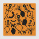 Halloween skelettdans, fladdermöss, häxkatter och gravstenar, alla element sammansatta för att skapa ett kusligt mönster. Ursprunglig vektorgrafik, upphovsrätt BluedarkArt.