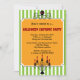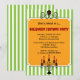 © 2010 Socialite Design. Ett redo för utformning av en roligt Halloween-gala eller en kostnadsgrupp-inbjudan som du kan anpassa med din egen text. Inbjudan innehåller en rulla med en skalle och en candelabra. Bakgrunden har grönt och vitt rand. Inbjudningstexten finns på en orange. Kontakta Socialite Design om du behöver hjälp med att anpassa.