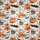 En charmig, handmålad vattenfärg Halloween-mönstrad väv med pumpor, döskallar, fladdermus och höstblommor. Den djärva orangen tänder ge som en vintage, mysigt känsla - perfekt för väv från säsong, utpressning och festlig décor.