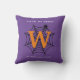 Halloween Spindelnät Bus eller godis Monogram Dekorativ kudde med lila bakgrund och orange initialt. Happy halloween! Fira årets svåraste kväll med det här spindelnätet, spindeln och monogrammet som första design i svartvitt och orange. Med texten "Bus eller godis" kan du ändra till önskad offert. Redot Text som du vill anpassa med ditt namn och Initial.