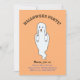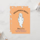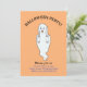 Vacker Halloween-gingespök-inbjudan. Det finns ett spök-mönster på orange bakgrund på baksidan. All text och alla nummer är redo att anpassas.