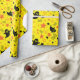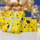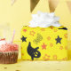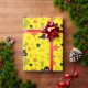"Halloween Spöken: Gult Seamless Wrapping Papper" har lycklig spöken som flyter bland skuggande stjärnor, med Halloween ord som "boo" spridd över hela perfekten för att lägga till en skådespel men magisk känsla.