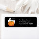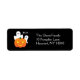 Returetiketter för Halloween med en originalgrafik på två spöken bakom en belyst pumpa som säger BOO! på en svart bakgrund.