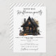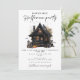 Skrämmande vattenfärgskostym Halloween-fest inbjudan med spökhus, spöken, kråkor, spindlar och mer.