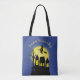 Halloween Witch silhouette med ett hemsökt hus med fullt måne. En spooky häxa som flyger på hennes rumpa runt sitt hemsökta hus på en riddare. Spockar och spådomar är gott på Halloween-natten, särskilt med den här skrämmande häxan. Gouls och spöken akta sig. Anpassa den här söta och vismska häxan Halloween-väskan för dig själv eller för ditt lilla trick eller behandlare. En underbar tids- eller behandlingskur kommer alla att ha på Halloween-natten.