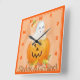 Halloween Square Clock med en vit Ghost i en Pumpkin som är ljus och färgstark. Det är på en Square Clock.