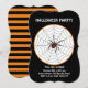 Vacker Halloween svart enkespindel inbjudan. Svarta och orangea ränder på baksidan. All text och alla nummer är redo att anpassas.