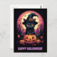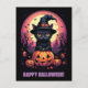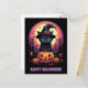 Halloween svart KATT med pumpa och häxa HATT Vykort