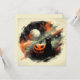 Träd in i den kusliga förtrollningen av den spökliga årstiden med detta fyrkantiga vykort som har en vintage-inspirerad halloween-illustration som är både nostalgisk och kosmisk. En svart katt med stora ögon sitter bredvid en klassisk jack-o'-lantern, båda badade i det varma skenet från en fullmåne som hänger på natthimlen. Men detta är inte din vanliga halloween-scen – det finns en touch av det himmelska här, med små stjärnor som prickar den djupa himlen och en subtil känsla av magi som gör hela kompositionen nästan overklig. Det är ett kort som strålar charm, mystik och en stänk halloween-nyckfullhet, som frammanar den perfekta blandningen av vintage-spöklighet och drömlik förundran. Den d