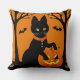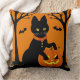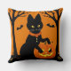 Halloween Svart Katt Omgiven av Jack-o'-Lanterns Kudde