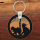 Bilden visar 2 svarta katter med ett glansigt öga på ett gräsmatch under gren i ett dött träd. Himlar längst bak är en orange och ljussvart färg. Ett svart gräns lades till. Dessa nyckelkedjor komar i ett urval av stilar och storlekar.