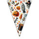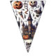 Add a little spooky fun to your office, classroom or at your next party with this Halloween Themed banner featuring flags with a different Halloween themed background. Each one unique. Can be customized to add a message.