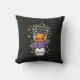 Dekorativ kudde med en söt hallopoldesign av en skalle, fladdermus, pumpa och spindel.
