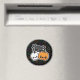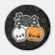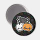 Magnet med en söt halloween-design av en pumpa, skalle och spindel.