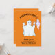 Vacker Halloween Trumpy och Munchy spöken inbjudan. Det finns ett pumpamönster på orange bakgrund på baksidan. All text och alla nummer är redo att anpassas.