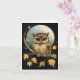 Cute, vintage bild i uggla på gren med löv och fullt på natten i himmel, finns på detta hälsningskort Halloween. Inuti kortet står det: "Vem ska ha en Happy halloween? Du...det är vem!" Ett sött hälsningskort för att skicka ett barn till Halloween.