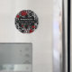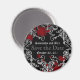 Personlig Gothic stil bröllop spara datum magnet för ditt Halloween- eller vampyrtema bröllop. Magneten är svart med ett ljus till mörk grått-fuktmönster på den och blodstänk som du kan ta bort om det behövs. Det ger en roligt, liten dekorativ accent på kylskåpet.