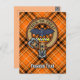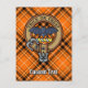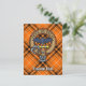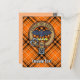 Halloween vapensköld-bricka med flygande fladdermus omgiven av ett band och ett låsbeslag över tartanbakgrund. Anpassningsbar. Anpassningsbar-meddelande.
