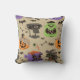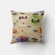 Halloween vintage mönster kastkudde som inkluderar dödskallar, pumpor och mer för att lägga till din heminredning och Halloween-samling.